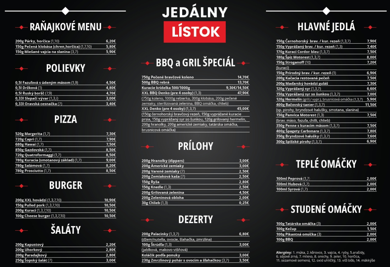 Tu si môžete vybrať zo širokej ponuky jedál a nápojov. Naším cieľom je spokojný a sýty zákazník.